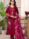 The embroidered chiffon shirt is adorned with beautiful motifs, complemented by a vibrant floral printed dupatta that enhances its aesthetic appeal. Paired with a comfortable trouser, this outfit is ideal for formal gatherings, festive occasions, or evening wear.