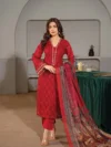 Exquisite luxury chicken Kari on cotton lawn with printed dupatta, Masterfully Assembled with Intricate Thread Embroidery, lace work and Paired with Mesmerizing Contrast