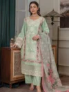 Exquisite luxury cotton lawn with printed Duppata, Masterfully/Assembled with Intricate Thread Embroidery, Paired with laces and Mesmerizing Contrast